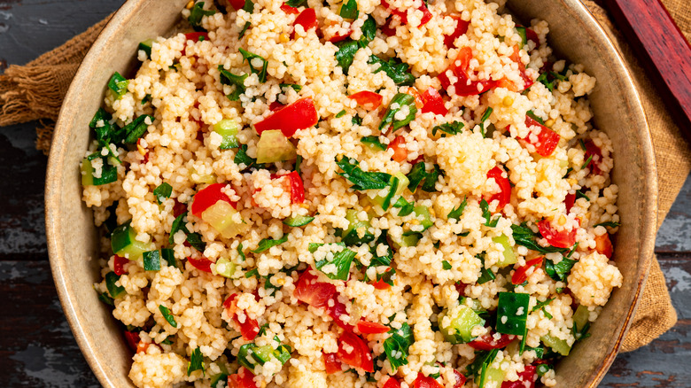 Couscous is often mistaken for a grain, like rice, but is actually a form of pasta — it's composed of tiny balls of durum wheat semolina flour. It is a popular choice as a side dish, and its distinctive taste adds a unique flavor to soups, stews, and veggie dishes. It can be easy and quick to make (and therefore a good option for busy families), but you should know that there are different types of couscous with varying methods of preparation. Be aware that couscous can become waterlogged or taste too bland if you select the wrong variety for the recipe you're cooking.