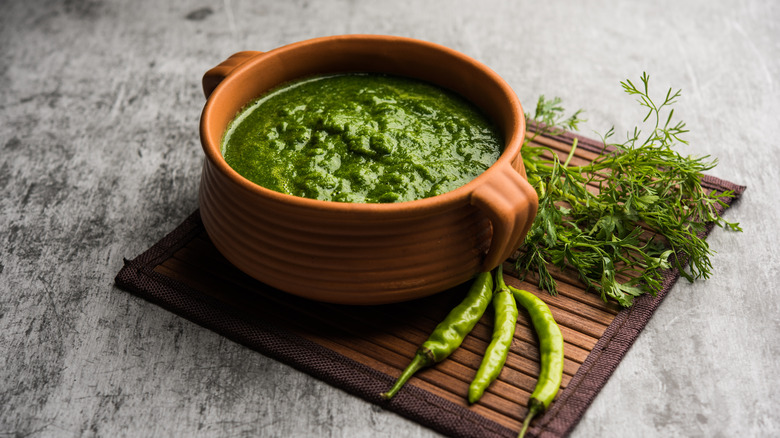 The taste and texture of chutney can run from chunky and sweet to smooth and savory. Popular versions of the condiment include tamarind chutney and onion, balsamic, and black pepper chutney, a Padma Lakshmi-approved variation that is ideal for a charcuterie board. However, if looking for a starting point to make the condiment, try a mango peel chutney.