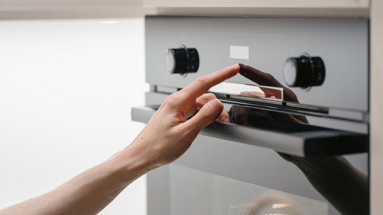 However, this doesn't mean you should grab a cleaning rag and get to work the second your bake comes out of the oven. It's dangerous to clean a warm oven, so let it cool off fully before you get to work. Warm ovens not only increase the potential of a burn, but they also heat up any chemicals you may be using, which can make them steam into the air and make it easier to make their way to your lungs. Once the oven is clean, give it a good wipe down wherever you see splatter or drips. Get ahead of the problem like you would with any other kitchen surface.