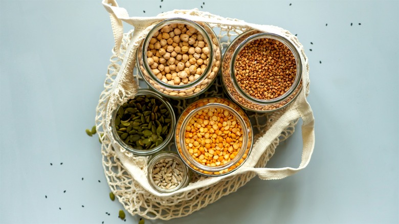 But it's not just the big carryout bags that you'll want to incorporate into your grocery shopping routine. Reusing clean paper lunch bags or jars is a no-brainer. Zip-top plastic bags can and should be reused. Although they're typically reserved for leftovers, you can use them for buying grains, nuts, or other lightweight pantry staples. But it might be even better to invest in a set of reusable silicone bags as they're more durable and food-safe. Finally, you can make some eco-friendly produce bags yourself or find them at your nearest zero-waste store. Ideally, they should be made from linen or cotton, not nylon.