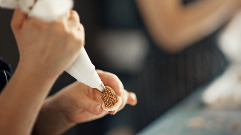 Once your sandwich cookie rounds are finished baking and adequately cooled, you can prepare your fillings. A simple buttercream is easy enough to concoct, or you can choose a super-light whipped cream to complement your pie cookie pieces. For an upgraded snack, you can even use a non-frosting, like jam or peanut butter.