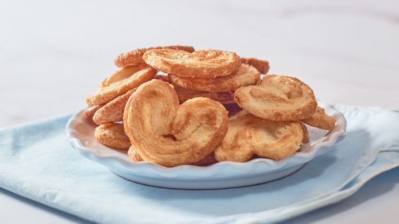 Palmiers are unique cookies with a very distinct shape, unlike any other cookies. Typically, they're made with puff pastry for a flakey and layer appearance, but this version uses pie crust instead. Combine the scraps, roll the dough into an 8-inch square, and top with melted butter and sugar. From there, wrap the sides of the dough into one another so the cookies resemble a heart-shaped log. It's important to roll the cookies tight enough that they won't uncoil as they bake.