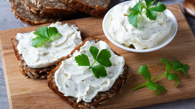 For one thing, you can easily shake up your morning routine by incorporating unexpected ingredients into your breakfast staples — like, say, trying a new cheese on your go-to bacon, egg, and cheese. If you're looking for a fresh take on the classic sandwich, we suggest swapping out your regular cheese slices and opting for a spread of ricotta instead. If you love the ooey-gooey texture of melted cheddar or American cheese, a bite of warm ricotta paired with scrambled eggs or a runny sunny-side-up should more than satisfy your cravings. It may have a lighter fat footprint, but ricotta provides all the cheesy richness you're looking for in a breakfast sandwich with the added bonus of creamy comfort.
