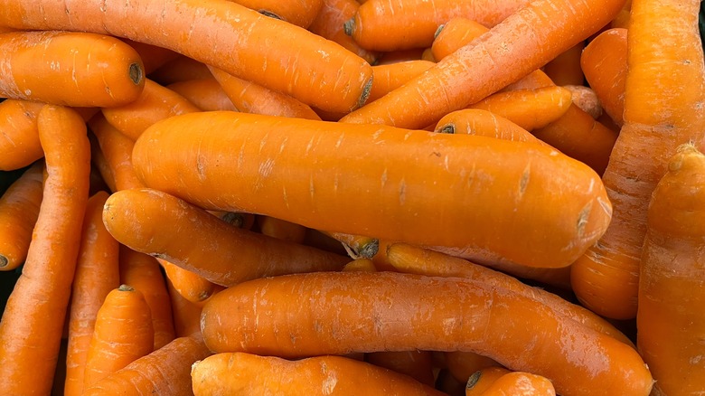 Carrot bacon is arguably the food that put Tabitha Brown on the map. Not only does it crisp up on the edges and satisfy that textural component of bacon, but the blend of seasonings also makes the flavor of this vegan alternative absolutely sublime. To make her recipe, she places her thinly peeled carrot strips in a marinade made with liquid smoke, maple syrup, garlic powder, paprika, and onion powder for a while before cooking the strips in her air fryer for about five minutes.