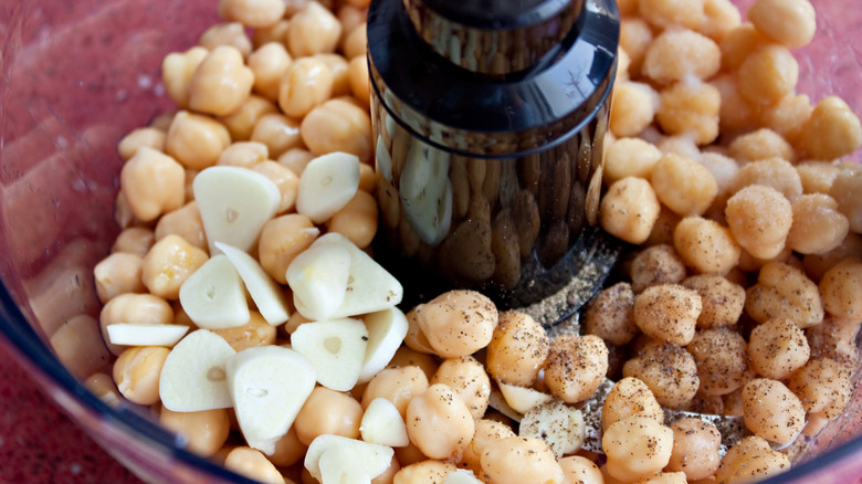 There are tons of egg replacements out there — from tofu to bottled JUST egg. Tabitha Brown instead uses a less mainstream ingredient: chickpeas. She adds canned chickpeas, mushrooms, onion, peppers, and spinach to a food processor with seasoning and black salt for an eggy undertone.