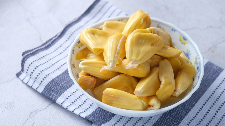 It's no surprise that one of Tabitha Brown's most popular ingredients to work with is jackfruit. The neutral-flavored, stringy fruit is the perfect texture for pulled "pork," and as Brown suggests, also for a vegan cheesesteak. While she prepares her husband's sandwich with Impossible Meat, she makes her own with canned jackfruit.