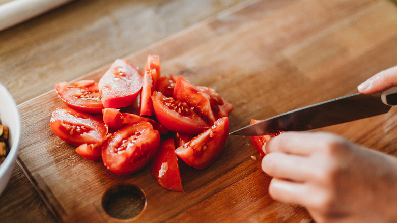 Poke bowls are a wholesome lunch idea and Tabitha Brown has the perfect way to make the recipe vegan. Her vegan poke salad bowl includes cubed tomatoes as the salmon or tuna replacement. She notes in a TikTok video that removing the skin from the fruit and seeds is optional, but she prefers to leave both.
