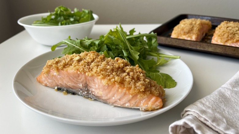 Salmon is a delicious protein for fish lovers to regularly incorporate into their meals. With plenty of ways to prepare it and a range of flavor profiles to pair with it, salmon is an all-around winner. If you're just moving on from breaded fish sticks or love crispy renditions like fish and chips, this baked brioche-crusted salmon recipe takes it a step further.