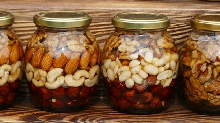 If you don't want to store your nuts in the freezer or fridge, the primary focus should be on keeping the nuts dry and sterile. To dry the nuts you want to store, put them in the oven at 250 degrees Fahrenheit until the moisture has evaporated but take them out before they begin to roast and turn brown. Once they're out, let them cool. To sterilize the jars, set them in boiling water for 10 minutes before placing them face-down on a towel. Once the jars are dry, put the nuts in and close the lid. Consider adding a desiccant packet and an oxygen absorber packet if you know it's going to be more than 12 months before you open it again.