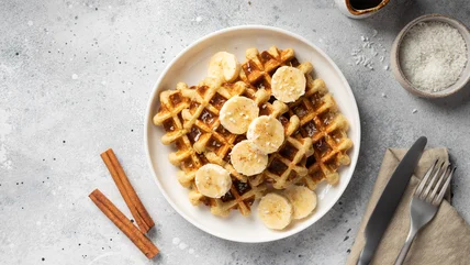These waffles will be slightly chewier and less sweet than your usual banana waffles, but not so wildly distinct in flavor that you cannot top them how you would any other waffle. If you want to get creative, however, we recommend pairing them with ingredients that acknowledge the Latin American roots of the plantain. In place of syrup, try drizzling warm dulce de leche over your waffles, or swap out a topping of blueberries and raspberries for slices of guava or pitaya. Alternatively, you can go the culinary-fusion route and complement the waffle's mild sweetness with the savory addition of fried chicken.