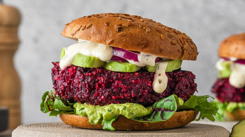 Whether or not you follow a plant-based diet, there's a good chance you've tried a veggie burger in some way, shape, or form. Popular recipes use black beans, lentils, or mushrooms as the patty base, but we think beets are a much more interesting (and unexpected) alternative. These trusty root veggies provide a pop of color and keep you full for hours — what's not to love?