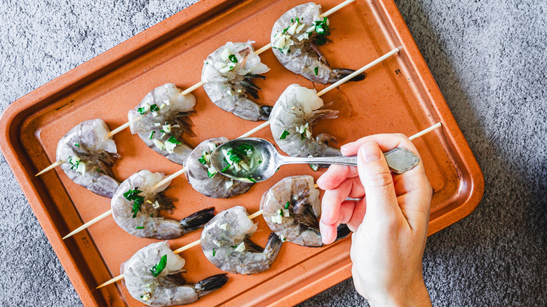 Skewer the shrimp