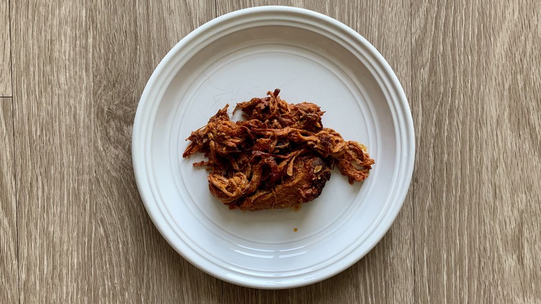 There's enough fat still on the meat to give flavor but not too much to turn us off. And lastly, like all the best meat, the strands of pork are tender, never chewy. It would doubtless taste great in a quesadilla with a blob of guac on top. Cheese is always a must, but when the meat is this flamboyant, even we can admit that it is barely necessary. This pork can stand up for itself.