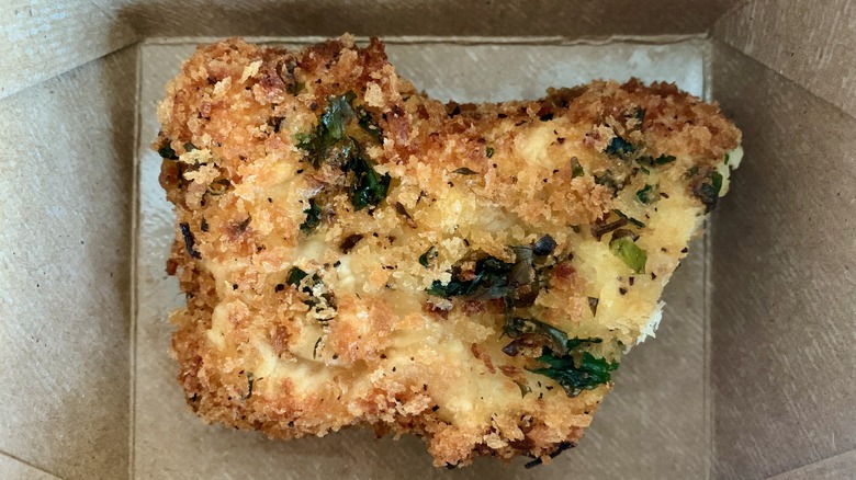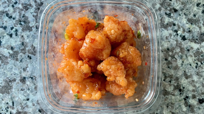 There's not a lot of flavor going on here, admittedly, but it's a solid buy nonetheless, particularly when singling out the hottest, crispiest pieces. The older, more chill nubbins were floppy and unappealing, similar to the worse pieces of popcorn shrimp. Definitely reheat if you can, and if the selection looks like it's been sitting out for a while, maybe go for something else.