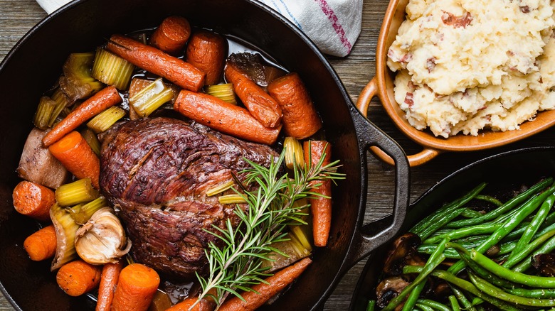 In a Food Network video, Symon states that this simple addition — along with a little lemon zest — will brighten the taste of your traditional pot roast. Mint's flavor profile is such that it may seem like it would clash with the savory elements of this meaty dish, but its cool, slightly sweet taste works well with the richness of this meat. Symon further advocates for this soft herb, noting you simply need to tear it up, with no chopping involved.