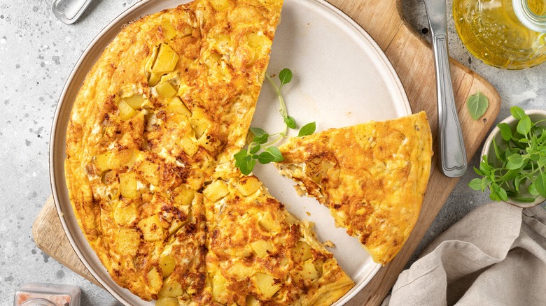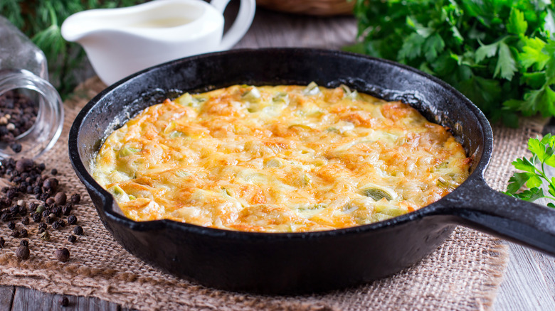 Frittatas are Italy's love letter to breakfast. Many will argue the differences between a frittata and an omelet, and the majority of statements will differ. In the States, when we hear omelet, we typically think of eggs carefully cooked on a stovetop and folded into a half-moon shape. This common dish is a French omelet, but other countries have their own spin on the hearty egg dish. In Italy, it's a frittata. Since frittatas aren't folded with precision, they don't require as much attention during cooking time and can be pan-fried or tossed in the oven.