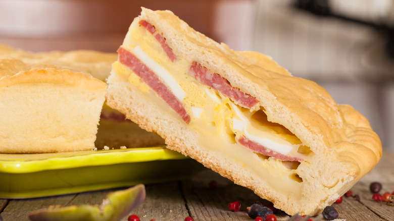 Holidays always call for pie, but what about pie for dinner? There are plenty of savory pies out there; shepherd's pie, meat pie, and chicken pot pie, just to name a few. In Italy, the take on an Easter pie is on the savory side, and it is even breakfast-friendly. Pizza rustica may have similar tomato-based flavors but it's far from a pizza pie. It's a baked egg casserole packed with Italian meats and cheeses.