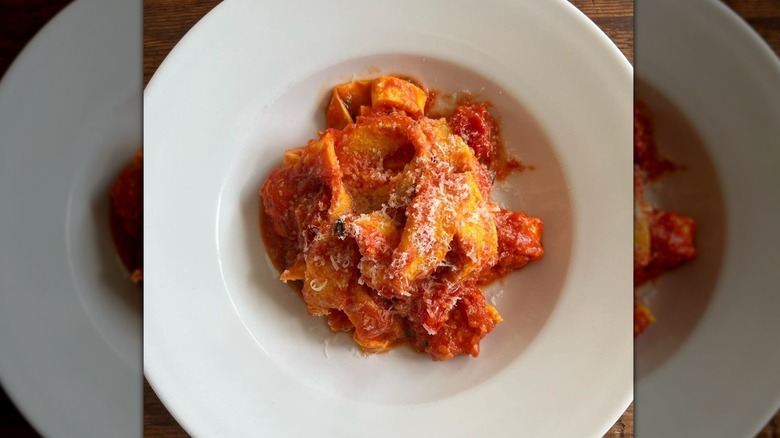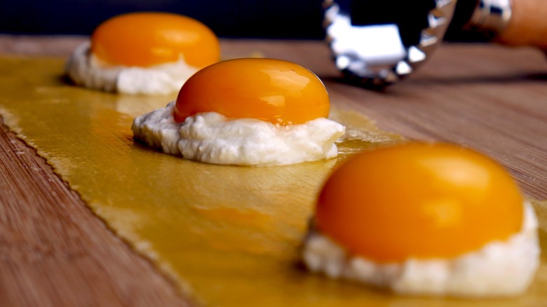 Raviolo is basically one giant round pocket of pasta, whereas ordering ravioli will present you with a plate full of smaller square ravioli. Given the hefty size, it's rather perfect for a solitary egg yolk. It makes for an ideal appetizer, or a hearty meal if a few raviolos are eaten with gusto. The dish is a traditional one that has been served all over Italy, from the north of the country to Rome. Our Tasting Table raviolo al' uovo recipe has a citrus element that really makes each bite pop with a burst of flavor.