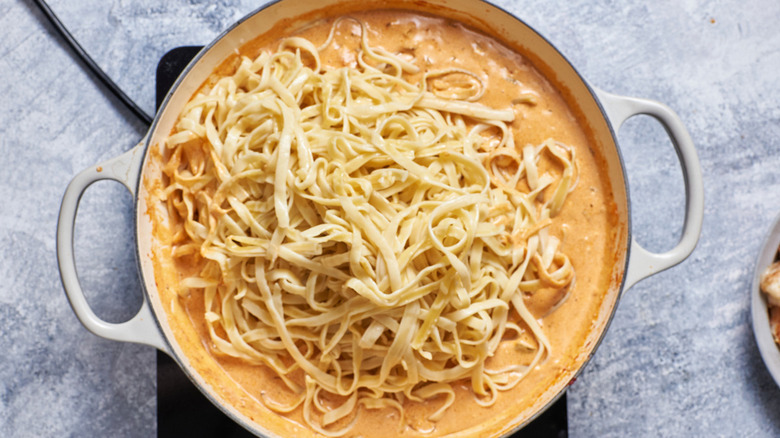 - 1 pound cooked fettuccine