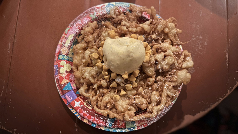 When you think the flavor parade has peaked, a scoop of creamy pumpkin ice cream joins the ensemble, offering a cool contrast to the warm and crispy base. The synergy of temperatures and textures is what makes this more than just a dessert but a sensory experience. For those who swear by the magic of funnel cakes, this variation is nothing short of enchantment. And for the pumpkin aficionados, it's a dream spun in golden sugar.