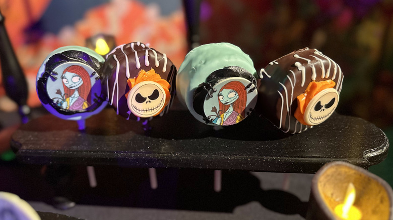 For those wandering near Cinderella Castle and in need of a scrumptious snack that pays homage to Halloween's most iconic couple, the churro cart beckons with a duo of delectable delights — the Jack Pop and the Sally Pop. Perfect for fans of "The Nightmare Before Christmas" and anyone with a sweet tooth.
