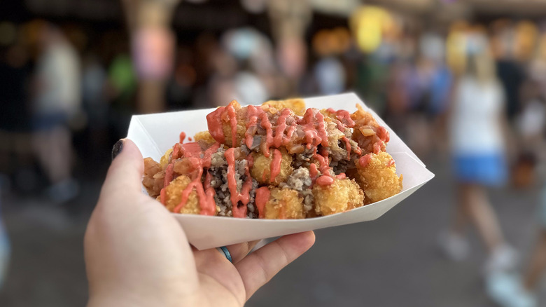 What makes this treat even more enticing is its prime location in the new Fantasyland area, conveniently positioned across from the Seven Dwarfs Mine Train ride. So amidst the haunting festivities, if you're craving a dish that's fun and filling, these loaded tots are your ticket to a flavorful journey.