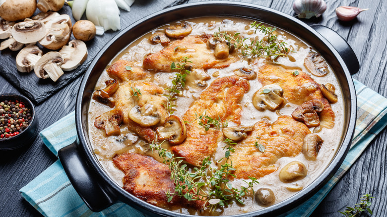 The flavor and texture boost hold up to hearty meats and poultry while complementing their savoriness, but you can also make it the star of the show by placing it atop pasta, potatoes, or polenta. If you really wanted to maximize the use of mascarpone, you could serve a chicken marsala main course alongside a mascarpone-infused risotto. Why stop there? A mascarpone-forward tiramisu is the perfect dessert to complete an authentic Italian multi-course experience.