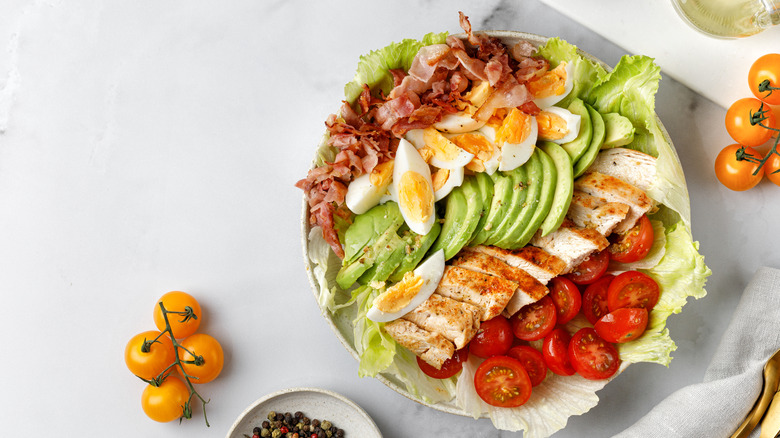 Salads are supposed to be healthy, right? Well, it really depends on the type of salad you're making. Cobb salads, which are loaded with bacon and cheese, don't always fit into the wellness category. That doesn't mean we shouldn't indulge in the delicious, multifaceted meal. It has such flavorful and well-loved ingredients, after all. However it is that you decide to load up your classic Cobb salad, potato chips merit consideration as a topping in place of croutons.