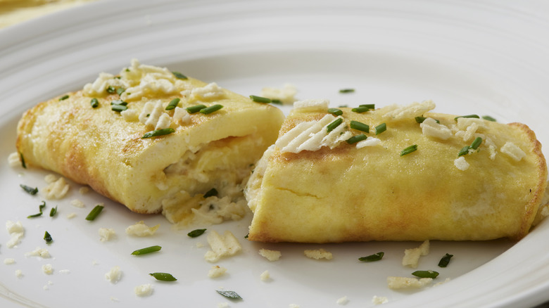 If you've been keeping up with the hit series, "The Bear," then it's likely that you've fantasized about the famous Boursin potato chip omelet a time or two. Who could resist all of those fresh herbs, the creamy cheese, the whipped eggs, and, of course, the out-of-the-box surprise garnish: potato chips? Make your omelet from scratch, and top with minced chives and freshly crushed potato chips. This unlikely pairing is incredibly satisfying and can elevate your breakfast.