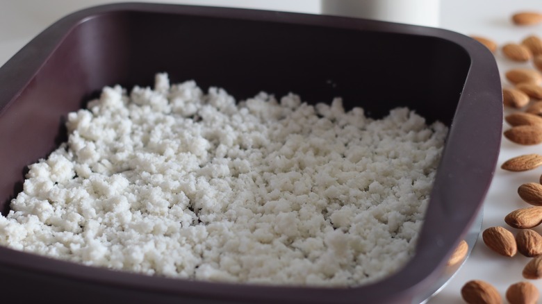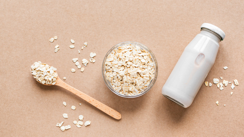 Even with a modest blender, you can churn out milk from raw, unsalted, and unroasted nut butter using a simple ratio of two tablespoons per one-and-a-half cups of water. If the dangers of breaking open a coconut are what's been stopping you from making coconut milk, try shredded, unsweetened coconut flakes instead; no soaking required. Or, if you're looking for easy slime-free oat milk, reach for oat flour or a blend of oat and nut flours, ready in a blink.