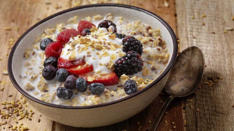 According to a Starbucks barista on Reddit, asking for "strawberry inclusions in the oatmeal" is the perfect way to improve this hearty snack. Inclusions are freeze-dried fruits used in Starbucks' refreshers like frozen dragon berries, limes, blackberries, and strawberries. Even though the inclusions are used exclusively for refreshers, there usually isn't a charge for extra, so there's no harm in asking your barista to add some to your oatmeal.