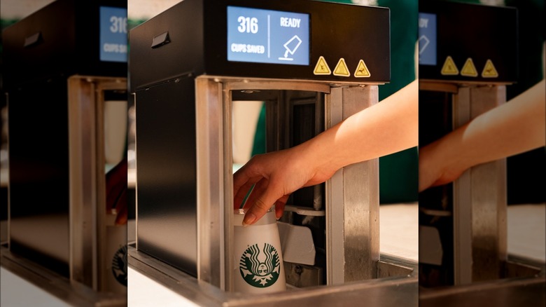 There is currently another test being done at Arizona State University that started in May. In this case, customers wash their own personal cup or a returned Borrow A Cup at a special cleaning station (shown above) in the store and receive a dollar off their order. More tests are planned this year at yet undisclosed locations. In a statement to Tasting Table, Starbucks said, "The biggest thing to learn from these tests as we prepare to bring this model to more stores, is how to offer customers a way to shift away from single use cups toward a reusable to-go-coffee experience, in a way that is convenient, easy, and enjoyable."