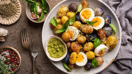 We get it — some people have a soft spot for traditional potato salad. Maybe you have fond food memories as a kid, or your grandmother used a beloved secret recipe. That's why this pesto and egg potato salad works: It has all the essential components of the original dish.