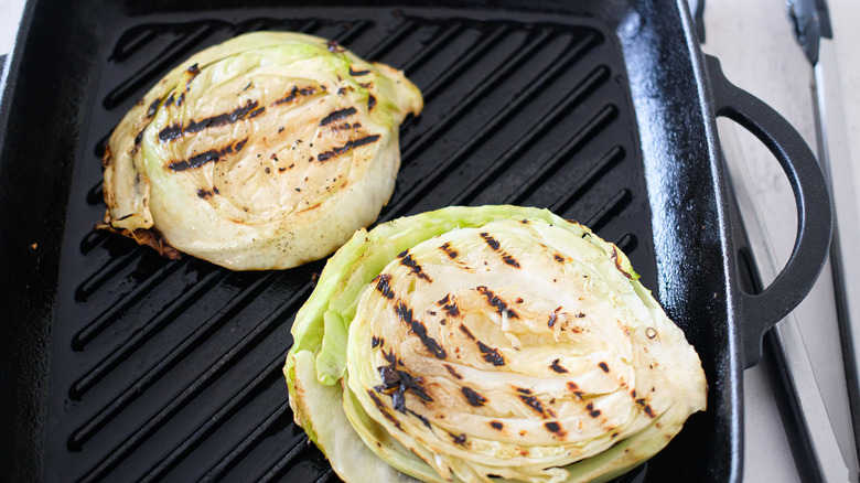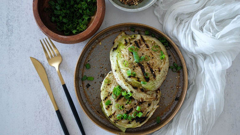 While cabbage steaks may not be meaty, they are nevertheless an intriguing alternative to turning this most budget-friendly of vegetables into coleslaw or sauteing it with noodles. This grilled cabbage recipe, which developer Chanel Murphy tells us is "a great side dish that is easy to make," is something that would easily complement a Japanese-style meal such as teriyaki chicken or pork katsu.