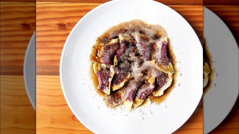 The restaurant's Casunziei is a beautiful ravioli, shaped like a half-moon and filled with beets, giving it a stunning, maroon color through the translucent noodle. The highlight of the dish, however, comes when the bubbling brown butter is poured on top of the soft ravioli. Poppy seeds also provide a nice crunch for contrast.
