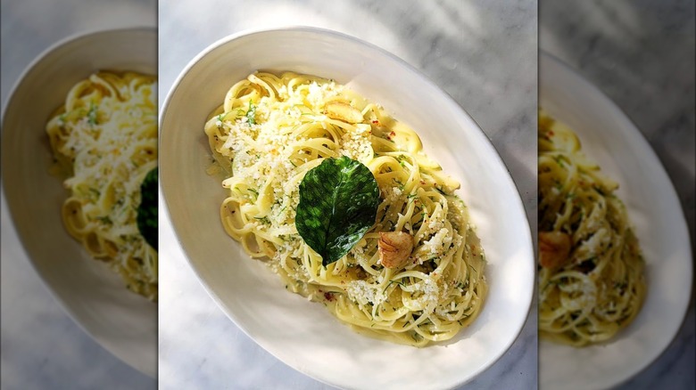 Felix by Chef Evan Funke is a Westside staple known for its iconic pizza and pasta dishes. As the name suggests, the linguine al limone is a zesty, lemony delight that has become a favorite for loyal regulars. The acidity from the lemon leaves is tangy and fresh, while the Pecorino Romano packs a nice punch. The beautiful dish is garnished with a lemon leaf, and while you might be tempted to order one all for yourself, you'll also want to save some room for the pizzas.