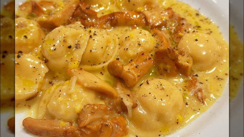 Each piece of pasta is filled with sweet corn, while fresh chanterelles rest on top. A sprinkle of freshly cracked pepper adds a hint of spice, and there's no denying that the pasta pairs perfectly with a crisp glass of white wine. For dessert, indulge in a pistachio and chocolate cannoli and call it an evening.