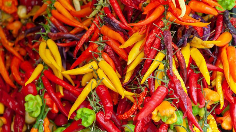 Most of us don't have access to a vast array of peppers. So, what's the solution, and how do you cook with chilis? Firstly, consider using both fresh and dried chili peppers in your curry cooking. Fresh chili peppers have a less intense, bright, and slightly sweet flavor when compared to their smoky, bitter, and fiercely spicy dried versions. Using both instantly adds more dimension to your curry sauce, and with so many types of peppers out there, there's no harm in buying what you can find in your area and going to town with them in your curry.