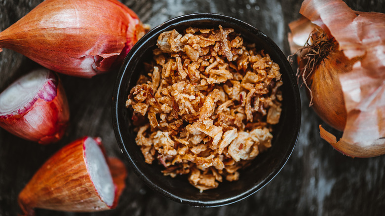 One method to incorporate crispy onions is while cooking your curry. You can even substitute them for the usual cooking onions. This simple swap expedites your curry-making process and introduces extra sweetness, robust umami, and a heightened depth of flavor. Traditionally, the crispy onions pair with traditional meat-based curries from the North-West Indian regional cookery schools. However, vegetable curries — often lacking in natural umami — can also benefit from the added flavor. If you would rather retain the crunchy texture of birista, use them as a garnish. You'll still benefit from the intensely sweet aroma.