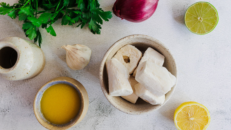 Gather the Ingredients for garlicky Cuban-style yuca