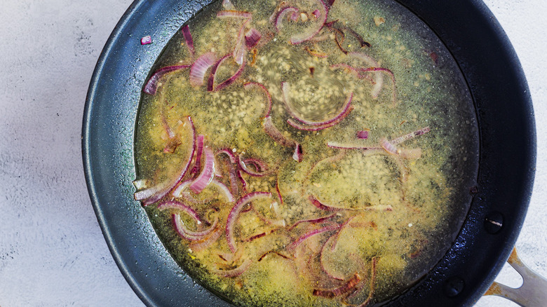 - In a pan, sauté onion slices in olive oil for 3 minutes. Add minced garlic, orange juice, lemon juice, lime juice, and some salt. Fry for 5-7 minutes.