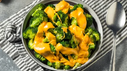 While the pairing between Cheetos and broccoli may seem out of left field, the cheesy flavor profile of the snack food compliments the vegetal bite of a piece of broccoli. Cheetos are crispy corn puffs that are dusted in cheese powder, so the pairing between broccoli and this snack isn't too far off from the classic combination of cheese and broccoli. Whether your broccoli is roasted, sautéed, or blanched, garnish your cooked broccoli with some crushed-up Cheetos for textural contrast and a burst of tangy cheddar in every bite.