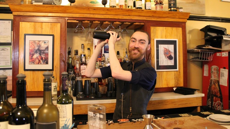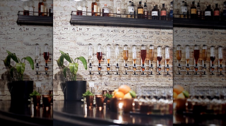 If you can't decide what to order at all, ask to roll the dice. The bartender will hand you some dice to play with, and each number you land on corresponds to a different drink you can potentially shoot from the wall.