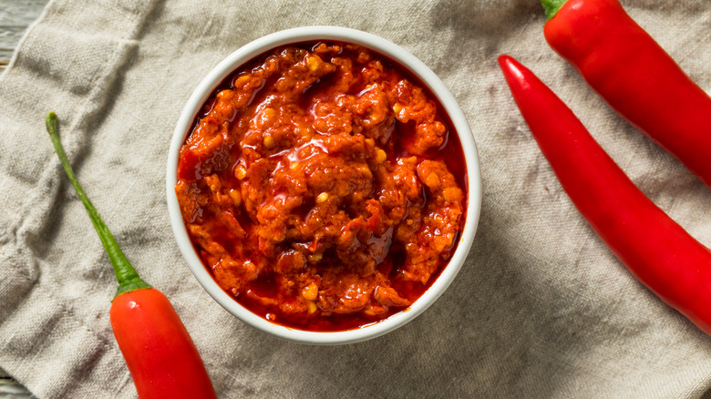 There are myriad types of chile paste on the market. Many countries and regions have their own unique versions, from harissa to gochujang — but give us a chili pepper paste endorsed by Giada De Laurentiis, and we're as good as sold. Giada's favorite is Calabrian chili paste, a smoky, spicy, and salty paste incorporating Italian Calabrian chile peppers, garlic, salt, and olive oil in its most basic form. It might sound simple, but Calabrian chiles have a hot and fresh flavor that stands out from other hot peppers.