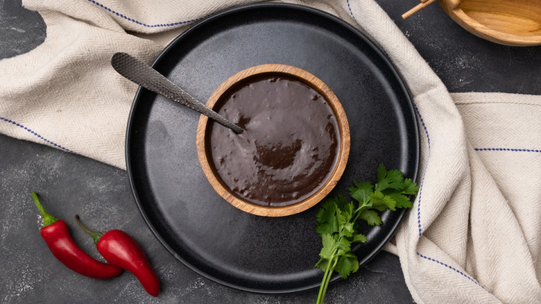 Sweet, salty, umami-rich hoisin sauce plays a role in lots of Asian dishes. It's a hodgepodge of ingredients that sound somewhat counterintuitive (black bean paste, soy sauce, rice vinegar, brown sugar, sesame oil, fish sauce, etc.). However, when mixed together, they're *chef's kiss*. Classic hoisin sauce is an ingredient in many dishes and marinades where it's combined with other ingredients, but it happens to make a great dipping sauce all on its own.