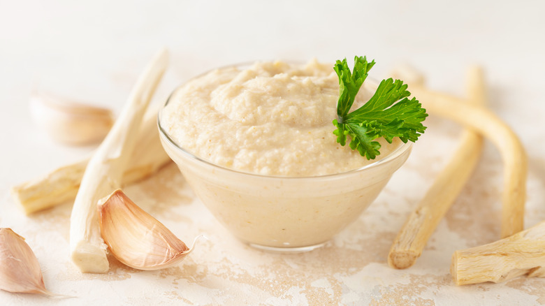 Horseradish tends to be a love-it-or-hate-it ingredient. The root, which has been around since at least 1500 B.C., was originally used for medicinal purposes, but today is more commonly used to spruce up dinner. Raw horseradish has a unique, nippy spice to it, one that's discernable more in the nostrils than the tongue, kind of like wasabi. It's rarely eaten raw on its own, but its pungent flavor makes a fantastic addition to cream-based sauces.