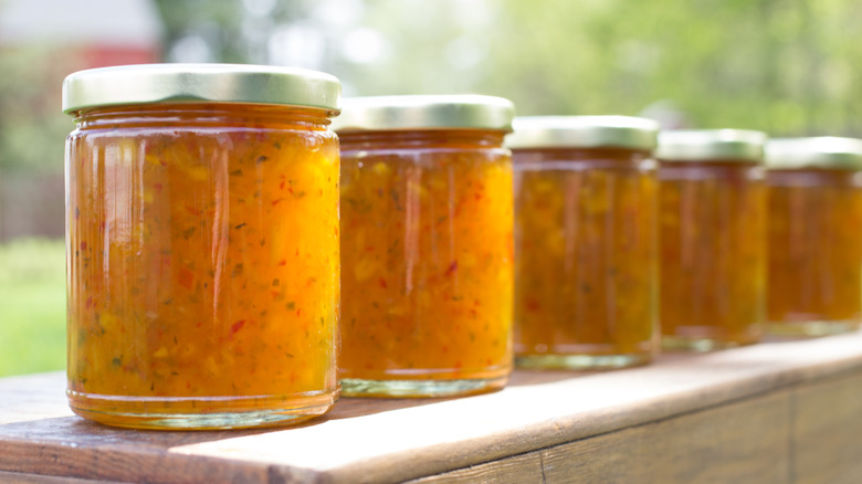 We've long known that sweet jams and jellies pair well with certain cheeses. Fruit jellies like strawberry, apricot, and peach can take a charcuterie board to the next level, elevate a pastry-wrapped baked Brie, and act as the cherry (jam) on top of a cheesecake. What happens when you add a pinch of spice to that sweetness? Magic, that's what. Hot pepper jelly combines fruit and berry jellies with hot peppers for a beautifully balanced gelatinous spread packed with sweet heat.
