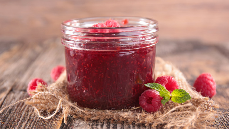 Here's where raspberry jam is interesting. While there's definitely sweetness from the raspberries and sugar used to produce it, raspberries are so naturally tart that raspberry jam has a natural, face-puckering quality to it that other jams lack. It's this element that makes it an optimal jam to pair with fried cheese curds. You've got a crispy, fried shell plus salt from the curds' breading, along with the sweet and tart, slightly acidic flavors of raspberry jam. Bon appetit!