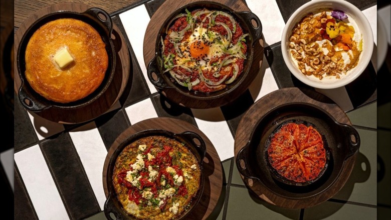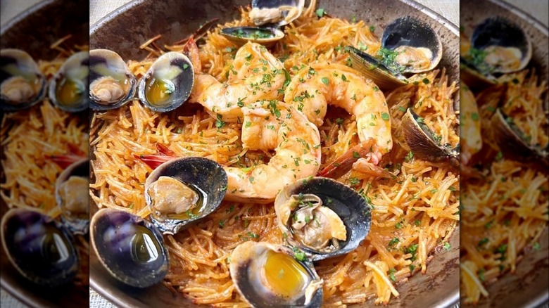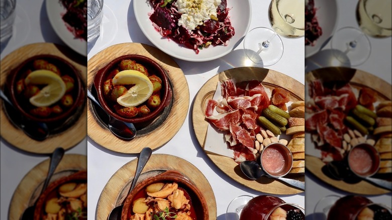 When it comes to tapas, don't miss out on the jamon-wrapped dates that are stuffed with goat cheese, and the deviled eggs. If you're a fan of tinned fish, the rotating conserva plate is always worth a shot — and of course, you can't go wrong with the paella de mariscos. Keep in mind that the paella takes 30 to 45 minutes to make, so be sure to order it right after sitting down.