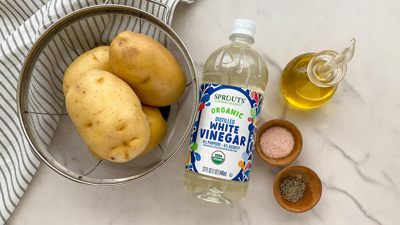 - Remove the pan from the heat and let the potatoes sit in the vinegar for 20 minutes.